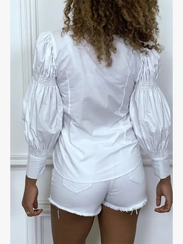 Laissez-vous séduire par l'élégance intemporelle de cette chemise blanche à manches bouffantes. Avec sa coupe moderne et romantique, elle apporte instantanément une touche raffinée à toutes vos tenues.