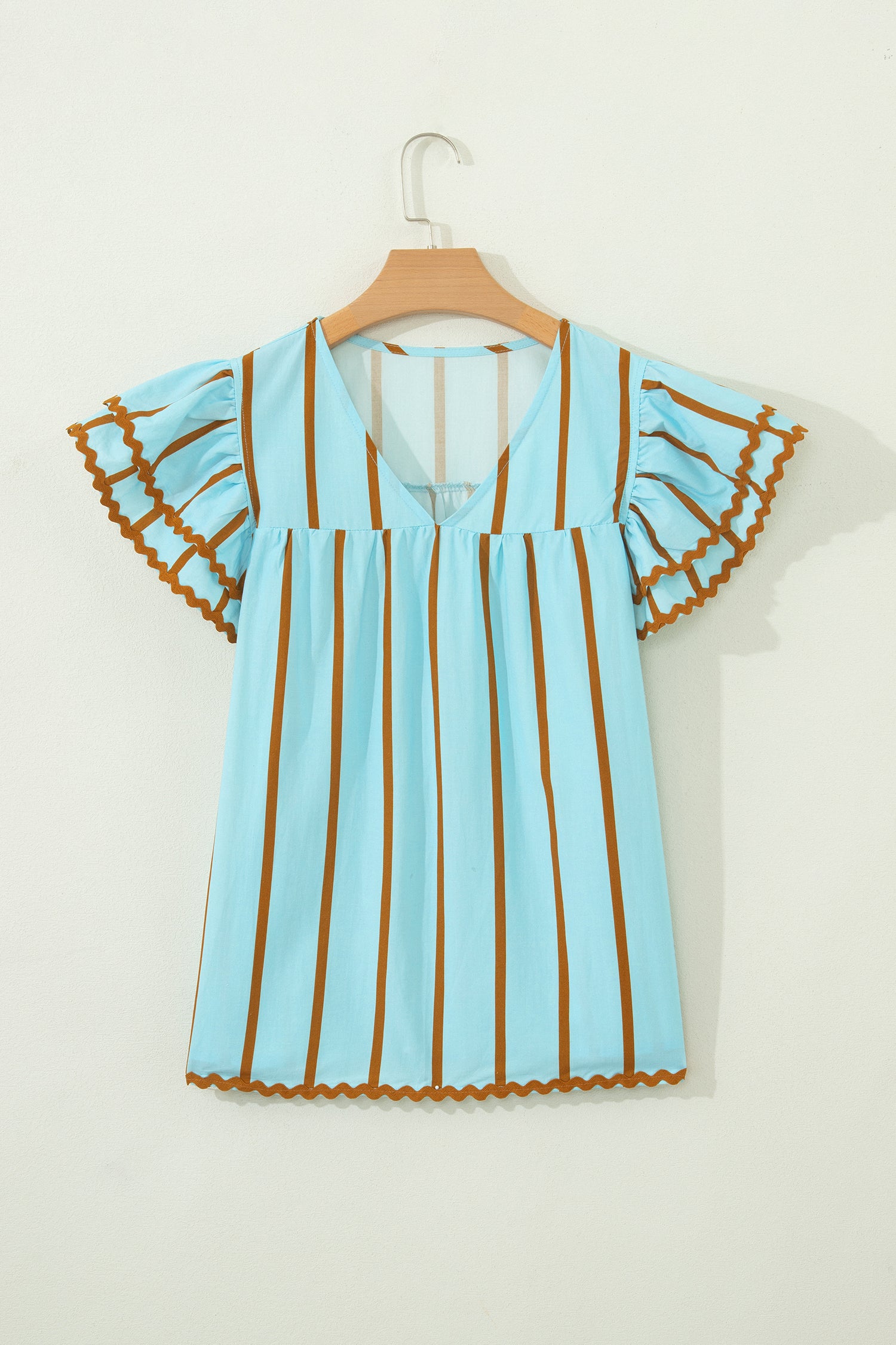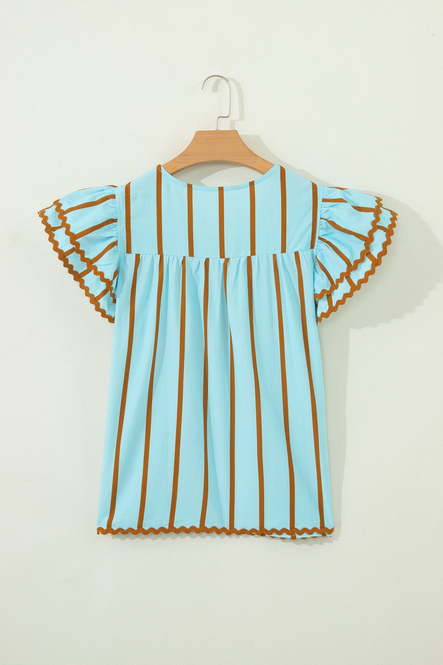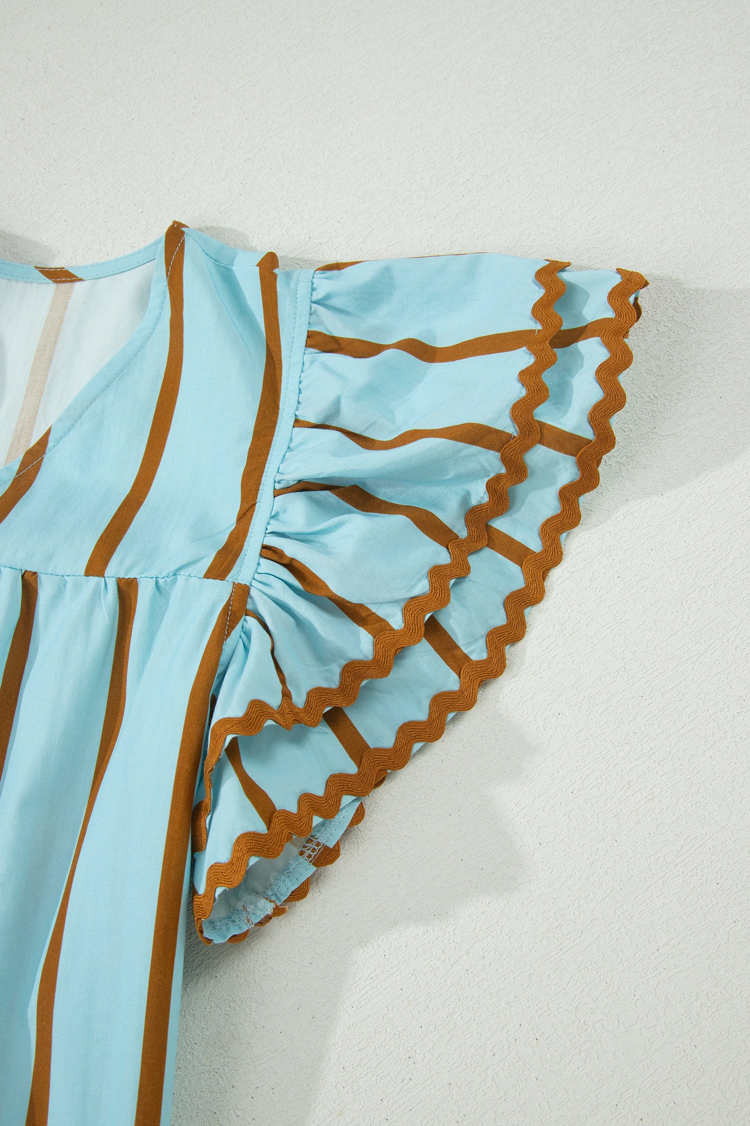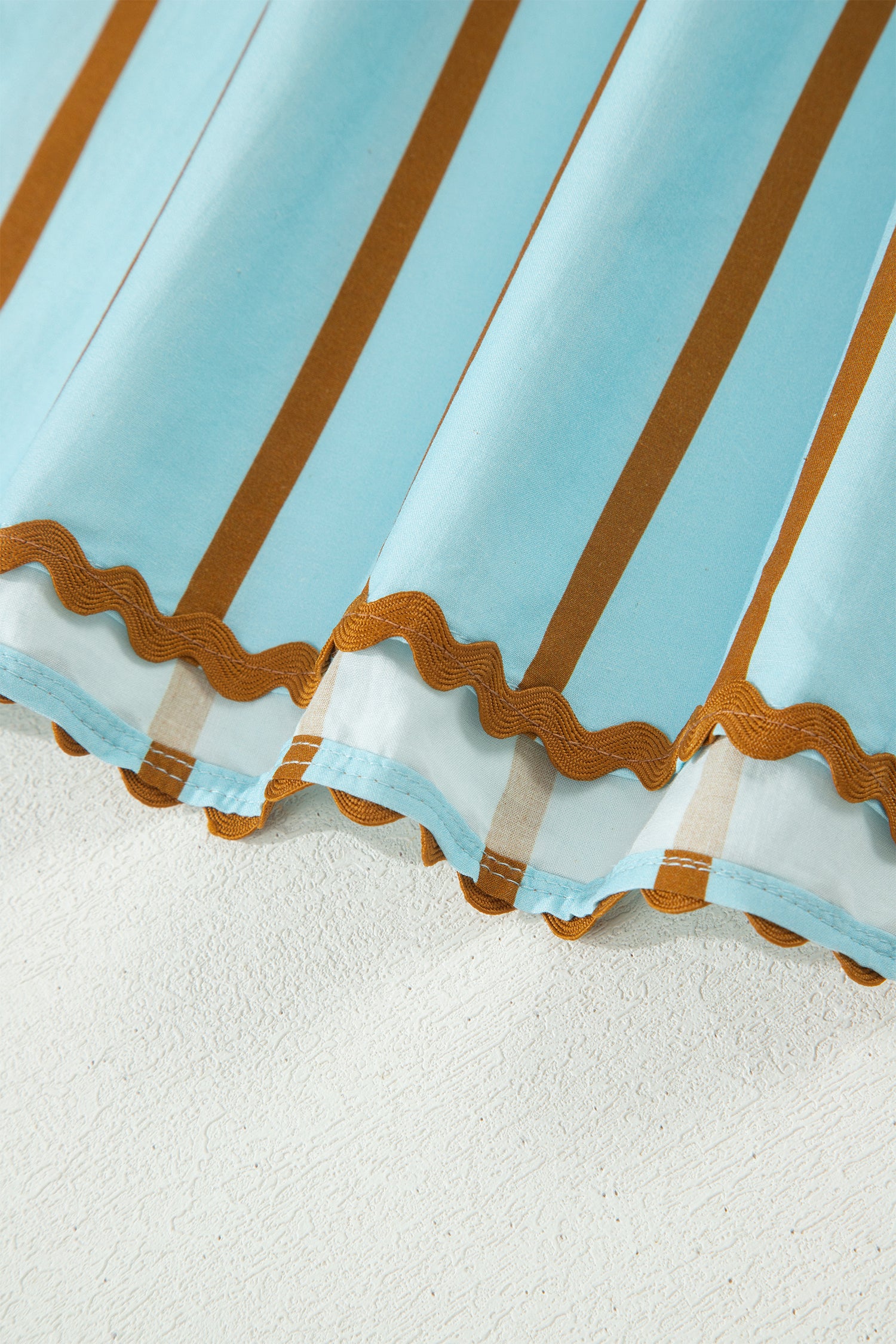 Son imprimé à rayures simples et ses détails en ric-rac lui confèrent un caractère unique.
