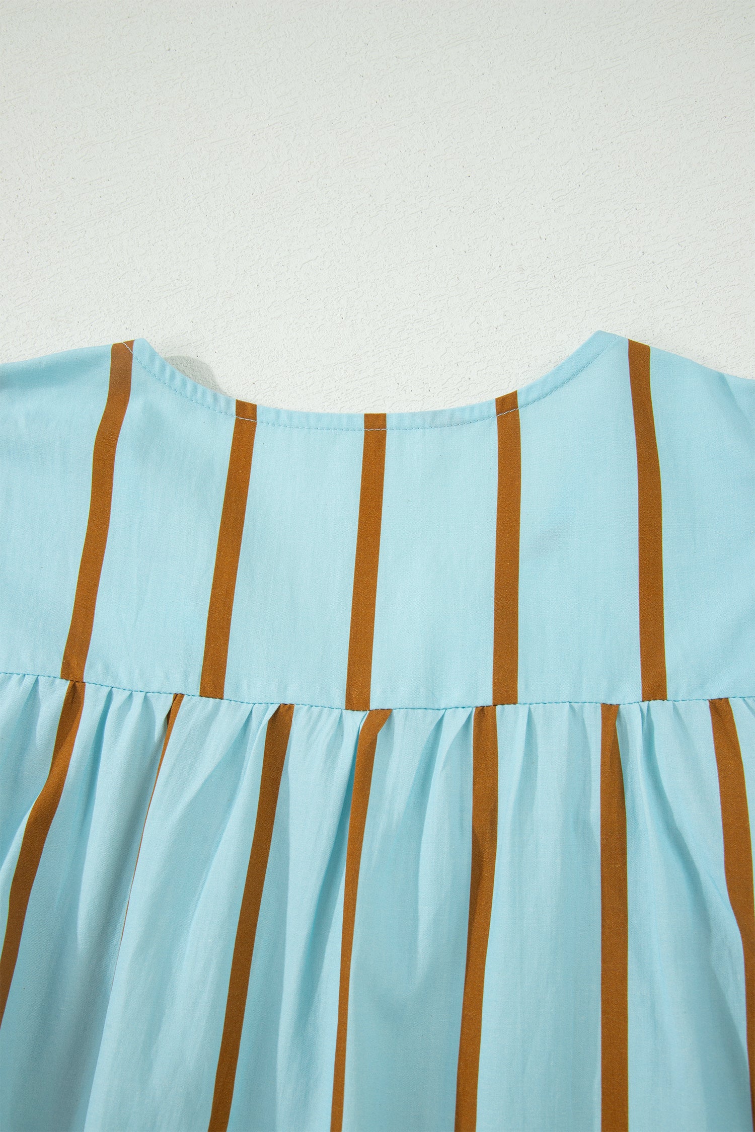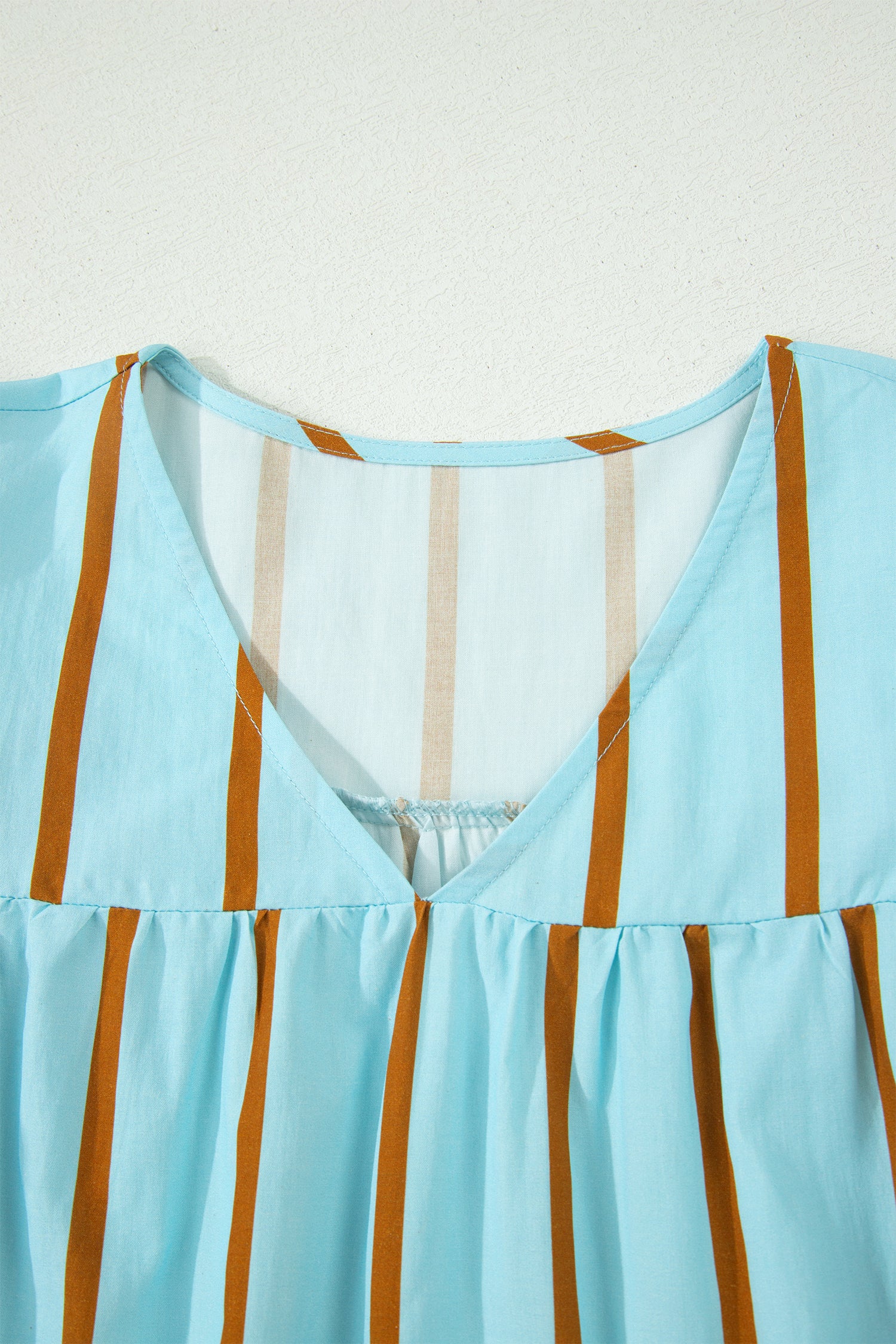 Elle possède un col en V, des manches courtes et une coupe décontractée.