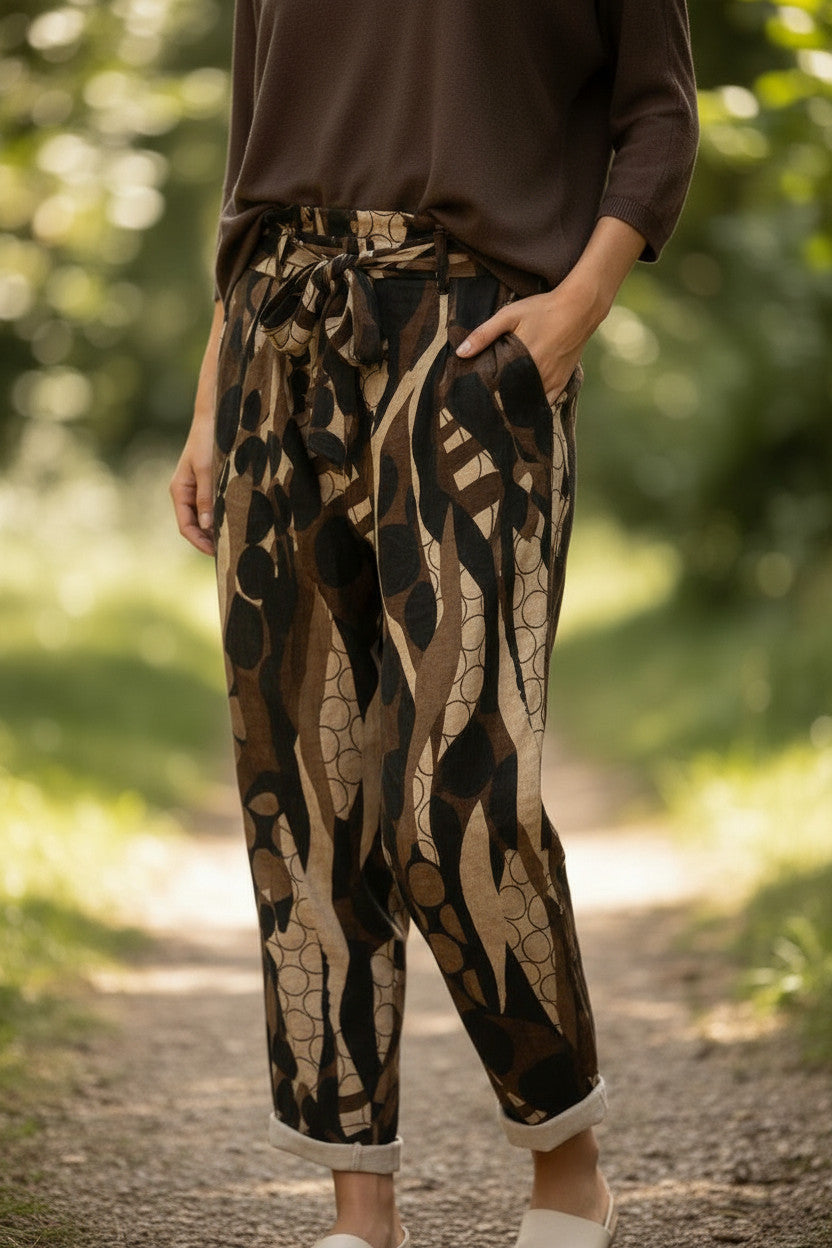 Pantalon ample avec imprimé abstrait brun/noir/beige