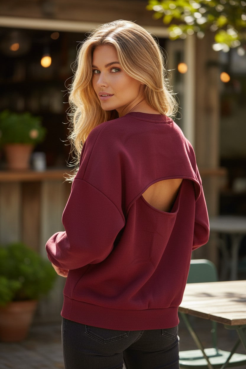 Un sweat à la fois chic et surprenant, qui allie simplicité et sensualité avec son ouverture au dos. Sa coupe classique à l’avant laisse place à une touche d’audace à l’arrière, idéale pour une allure décontractée mais toujours féminine. Confortable et doux, il se porte aussi bien en journée qu’en soirée.