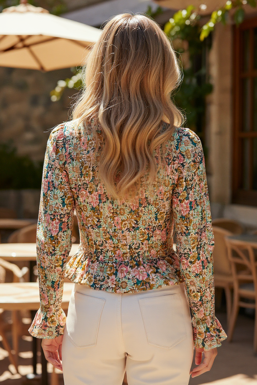 This floral print blouse is designed to add a touch of freshness and playfulness to your outfit. The delicate floral print and vibrant colors bring a joyful dimension to your daily looks, while offering an elegant and refined appearance.