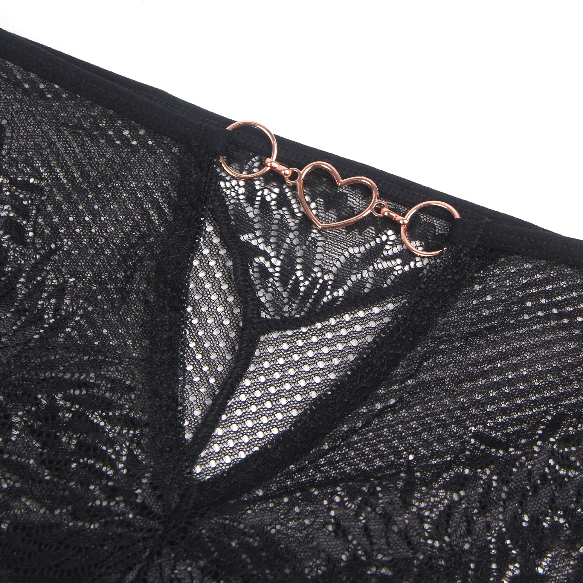 Culotte dentelle Noire avec ouverture dos et anneau cœur