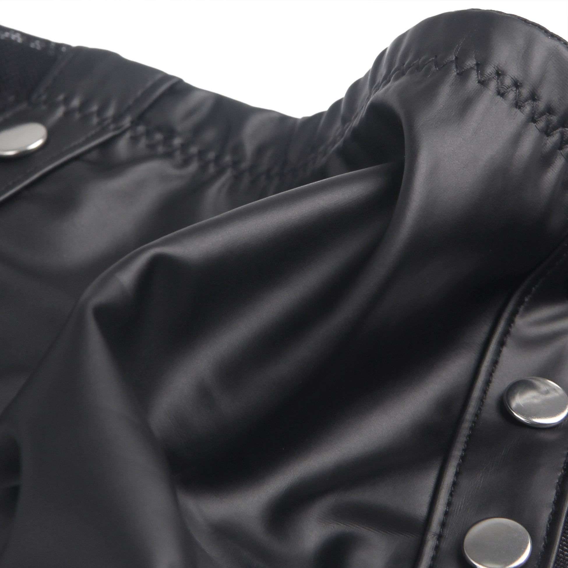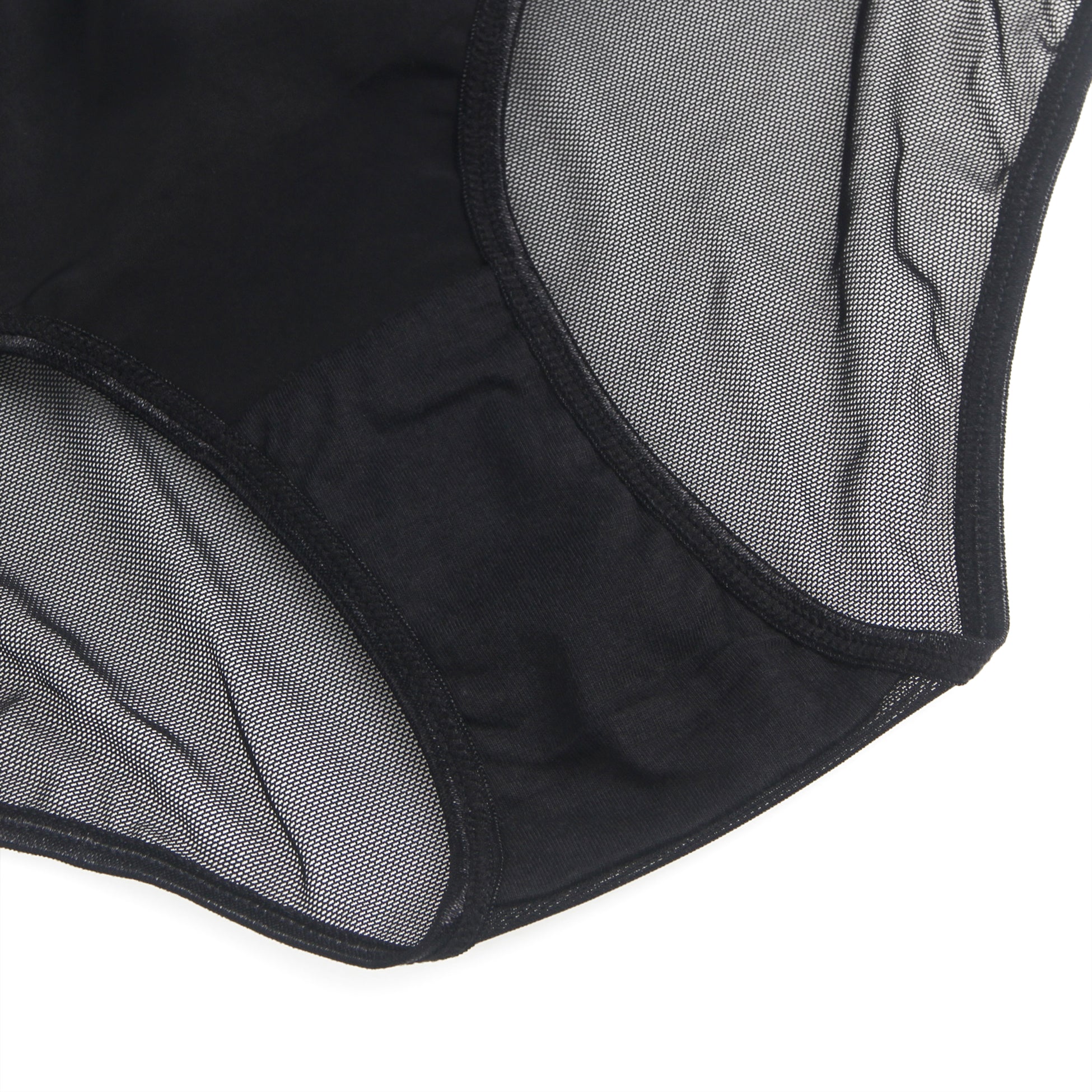 Culotte taille mi-haute en microfibre lisse à l’avant, côtés et dos en tulle transparent. Détails rivetés sur les hanches pour un style audacieux. Gousset doublé avec protection hygiénique.