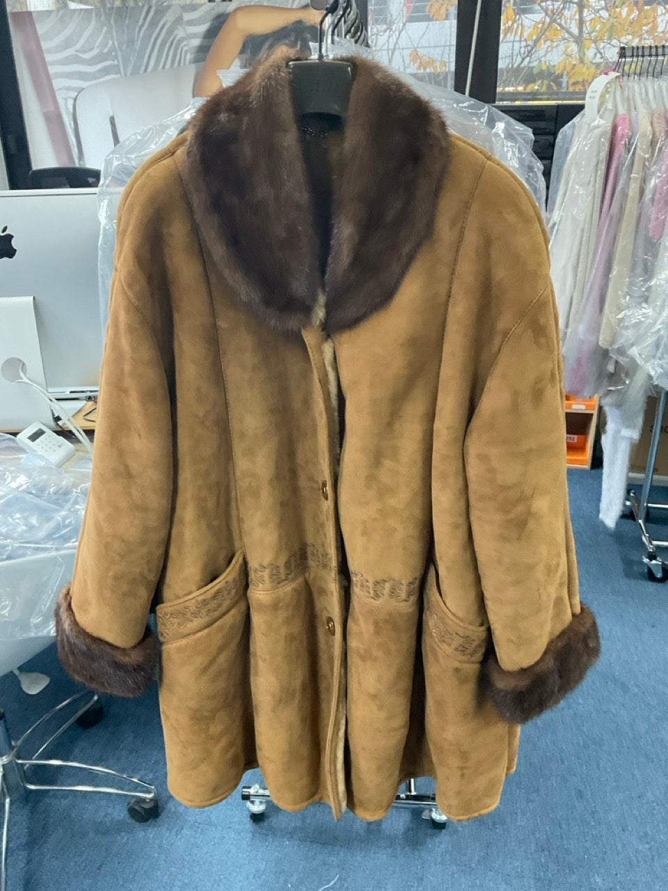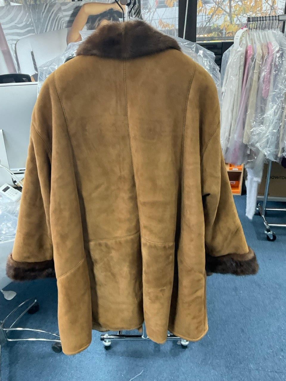 Veste longue en peau retournée type daim