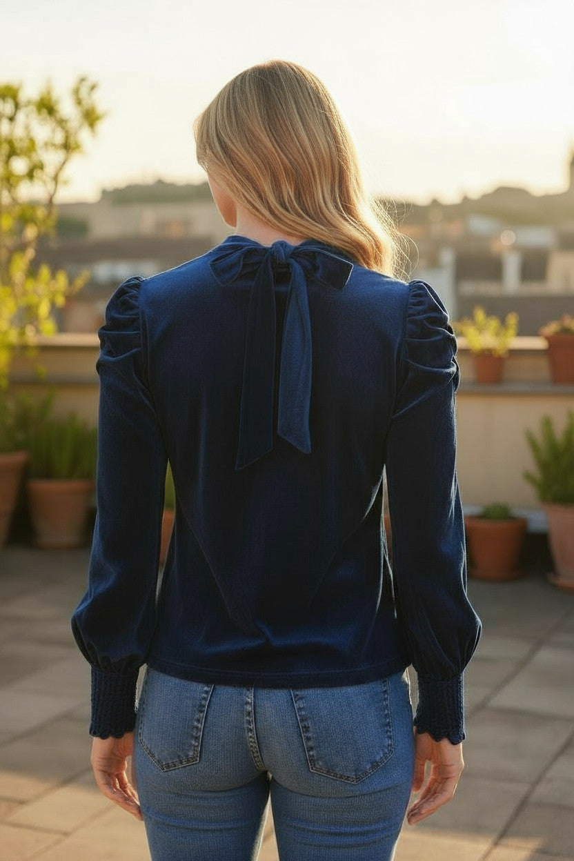 Sumérgete en elegancia con esta blusa de terciopelo de alto gas, diseñada para mejorar tu silueta al tiempo que proporciona una comodidad absoluta. Su cuello vertical estructurado agrega una nota de refinamiento sobrio y atemporal, ideal para atuendos vestidos o relajados. Las mangas hinchadas y los hombros congelados crean un juego de volumen delicado, mientras que las muñecas apretadas por los fruncidas proporcionan un acabado ordenado y femenino. Su textura suave y ligeramente brillante revela toda la riqueza del terciopelo, para un aspecto sofisticado sin esfuerzo. Perfectamente versátil, esta blusa va bien con los jeans crudos como con una falda de alta vista para un estilo moderno y asertivo.
