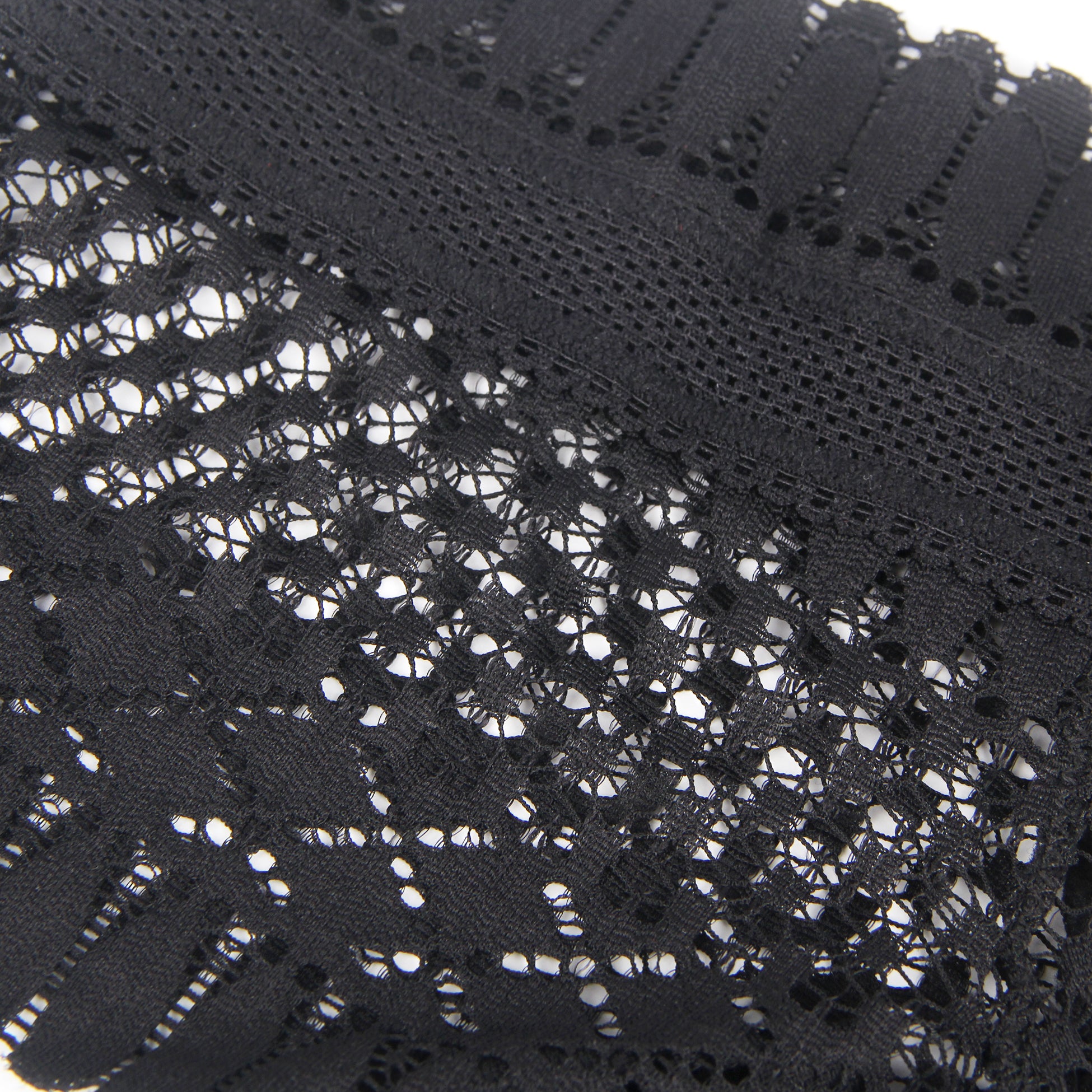Shorty taille haute en maille ajourée noire ultra extensible, au motif graphique. Coupe galbante et bordures festonnées pour un effet seconde peau. Gousset doublé en coton.