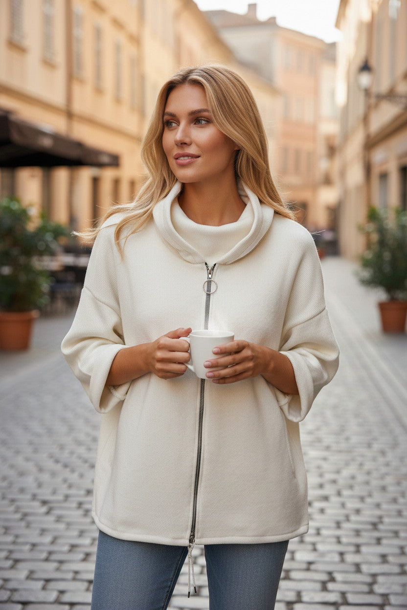 💫 Élégance Zippée à Col Roulé – Veste Douce et Moderne