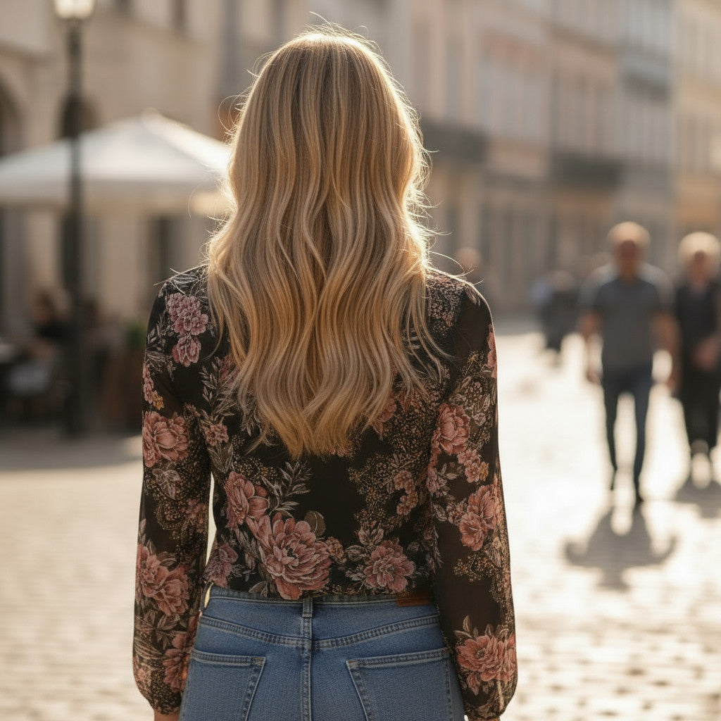 Ce chemisier fleuri est l’allié parfait pour celles qui recherchent une pièce à la fois élégante et décontractée. Son imprimé floral délicat insuffle une touche de fraîcheur et de romantisme à votre tenue. Le design portefeuille, doté d’un col en V flatteur, sublime votre silhouette tout en mettant en valeur le port de tête. Les manches ballon apportent une note tendance et moderne, soulignant une silhouette chic et actuelle. Sa coupe ample assure un confort optimal, idéal pour un porté quotidien sans compromis sur le style.