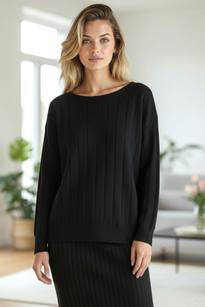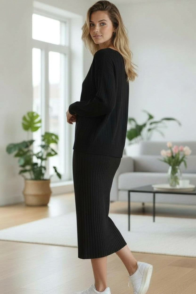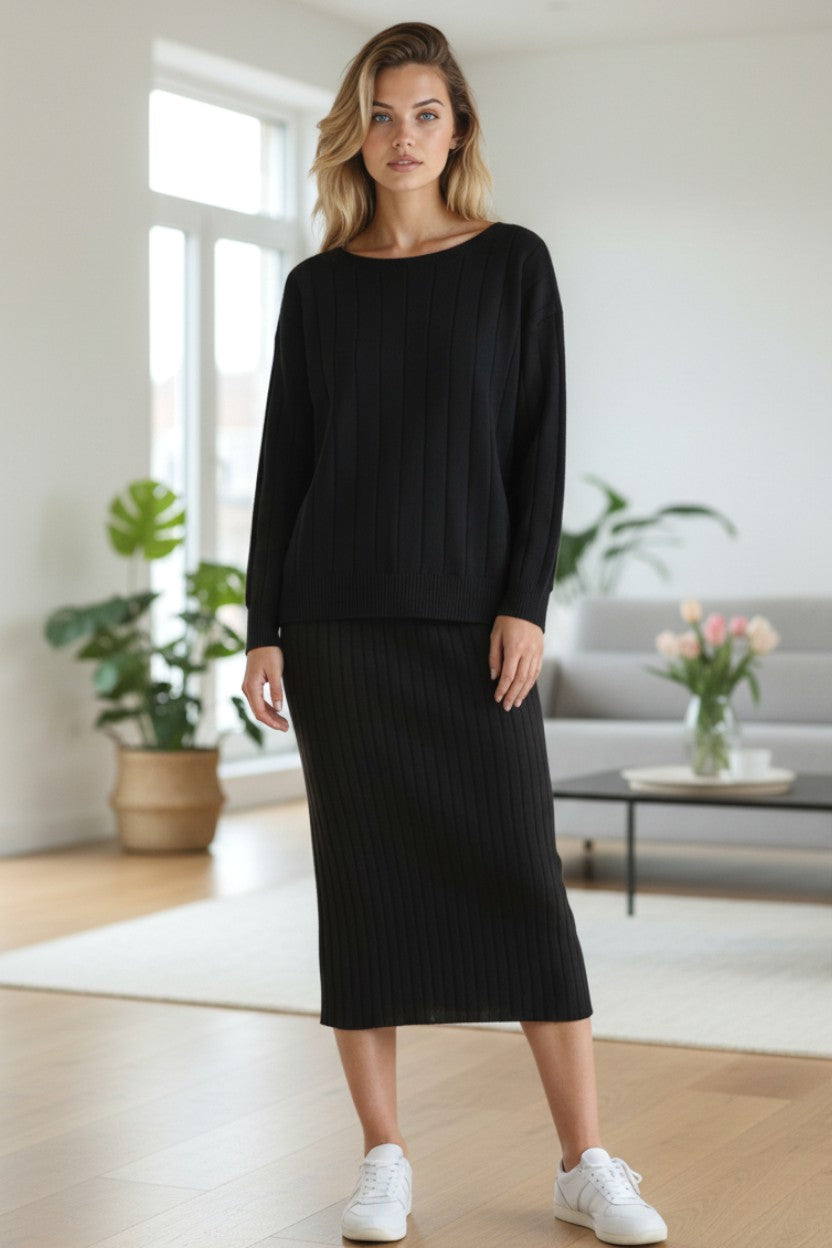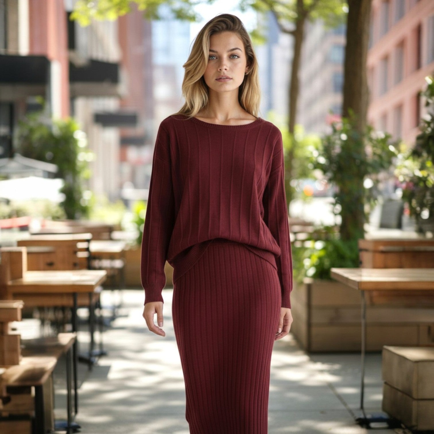 Un ensemble pull + jupe midi côtelée chic et moderne, idéal pour les journées citadines ou les soirées élégantes. Sa matière douce et extensible épouse parfaitement la silhouette tout en offrant liberté et confort. Disponible en deux couleurs incontournables : noir & bordeaux.