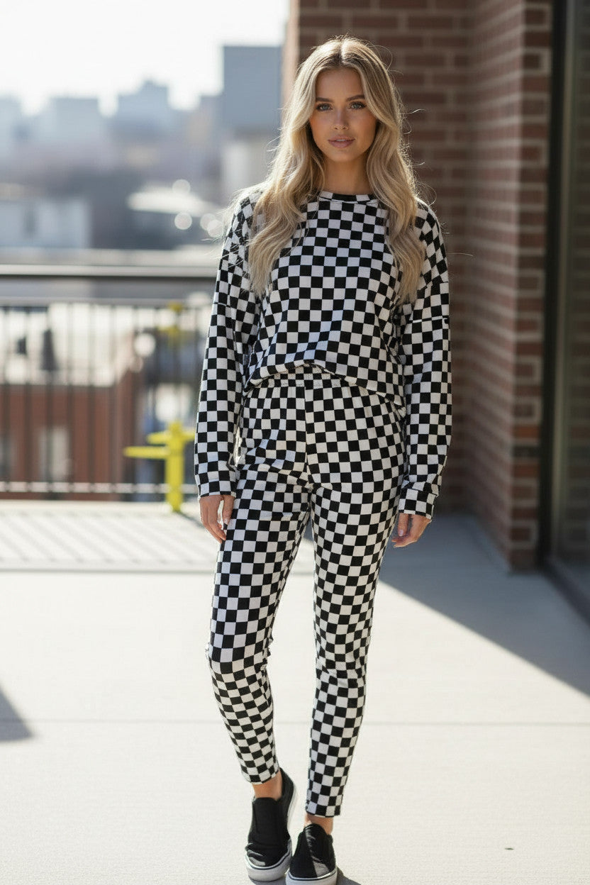 Optez pour une tenue coordonnée et sans effort grâce à cet ensemble deux pièces parfait pour vos moments de détente. Le design moderne et le motif à carreaux accrocheur ajoutent une touche tendance et chic à votre garde-robe. Que ce soit pour une soirée cocooning à la maison ou un week-end de relaxation, cet ensemble saura vous séduire par son élégance et son confort.