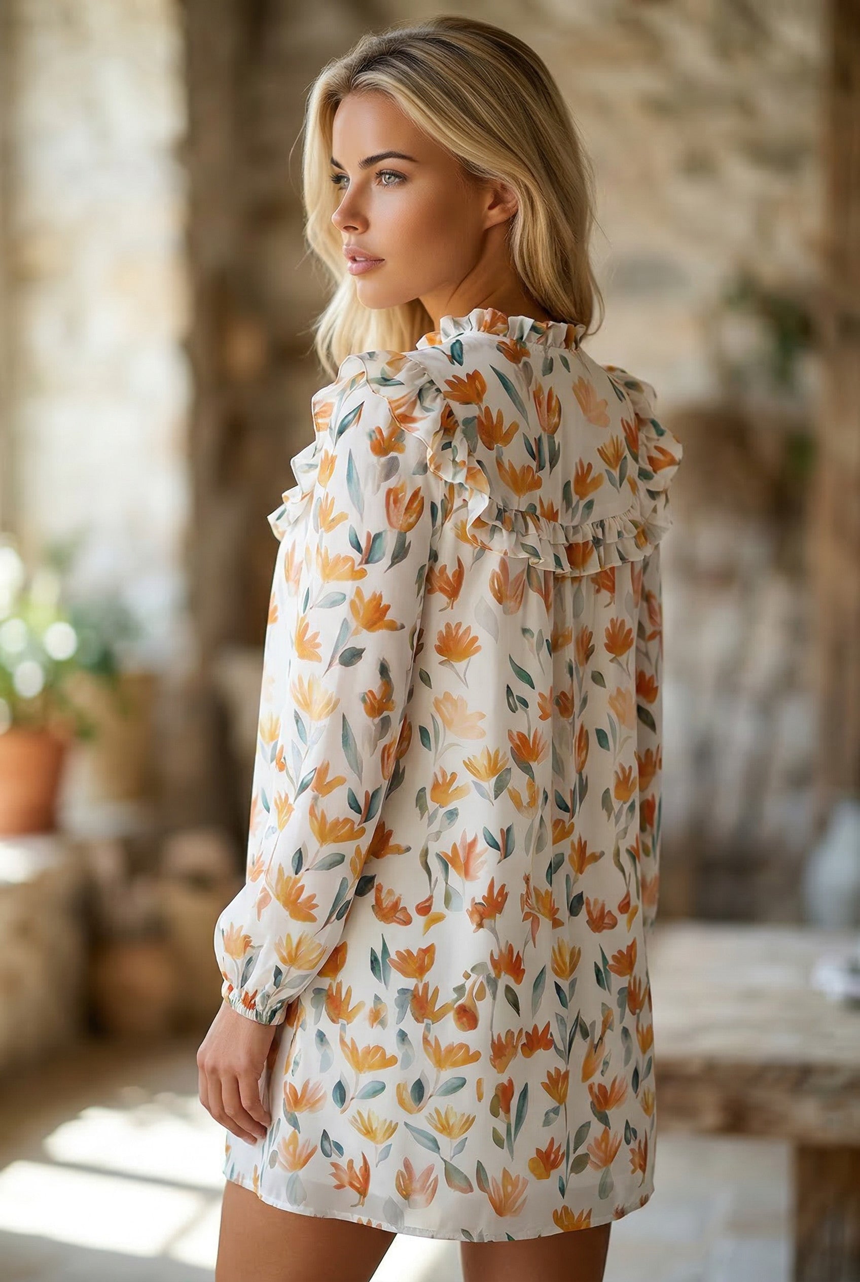 Les détails à volants rehaussent la silhouette avec une touche douce et séduisante.