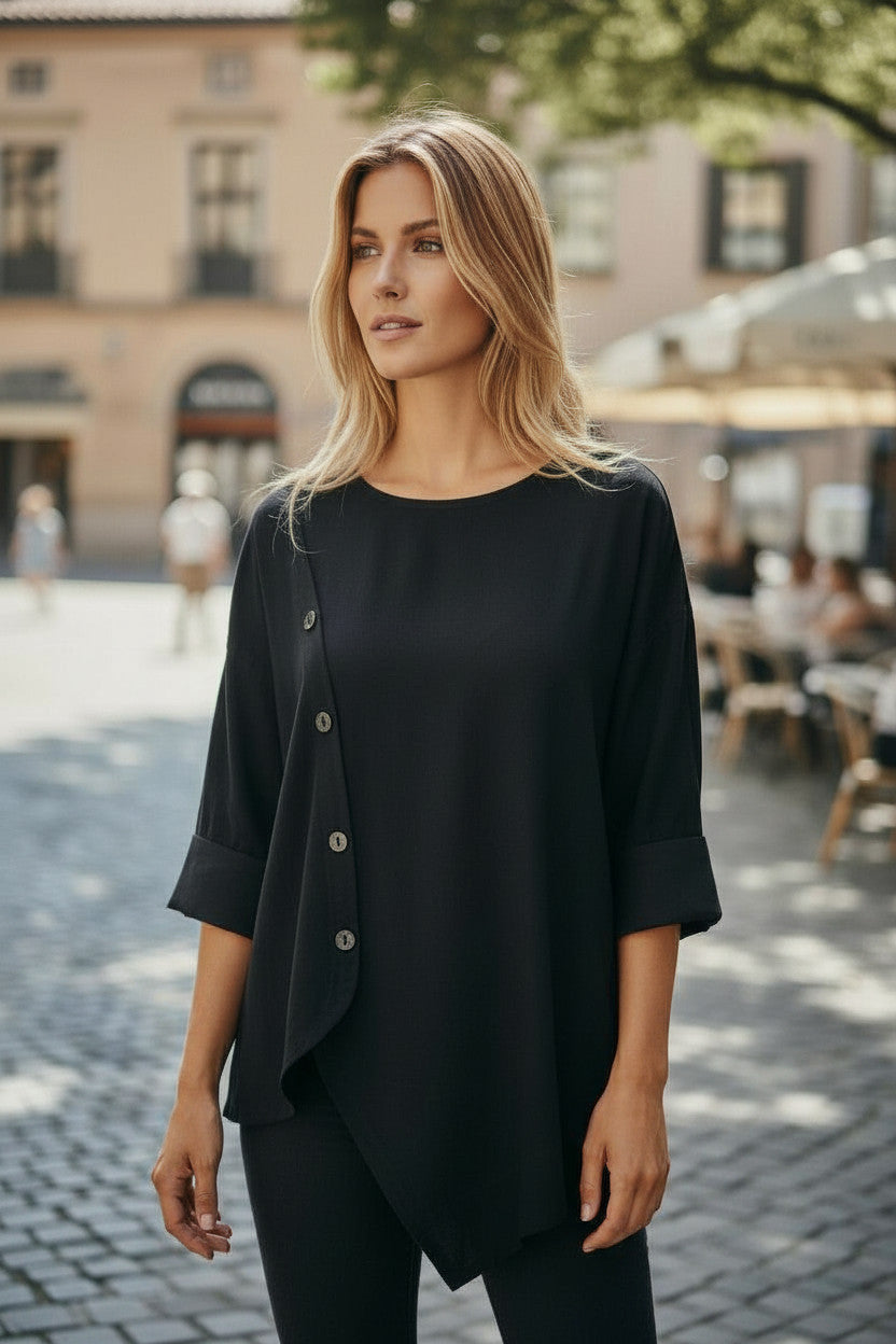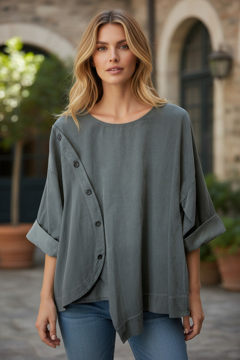 🌿 Tunique Oversize Boutonnée au Style Asymétrique
