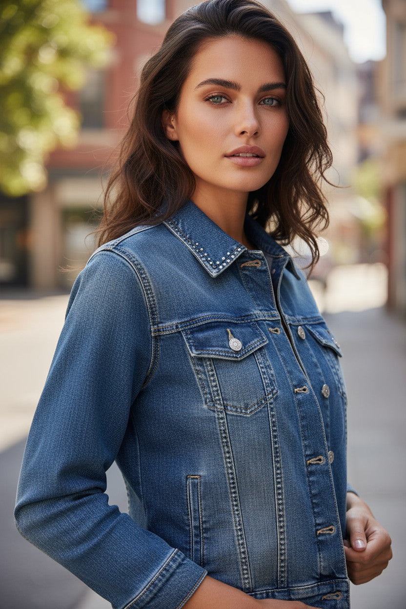 👉 Une veste intemporelle revisitée avec un détail rock au col. Elle se porte aussi bien sur un look décontracté avec un jean que sur une robe pour casser les codes et apporter du caractère.